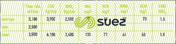 The effluent coming from the factory is biodegradable but contains fats which need to be taken into account in the biological treatment process design.
