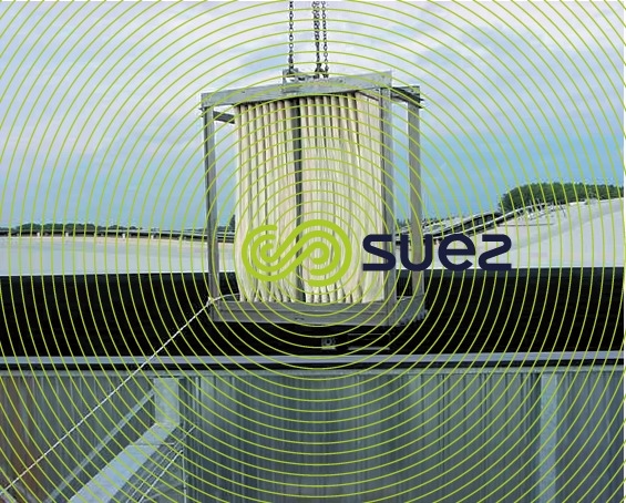 These modules are submerged in the water to be treated but they could equally well be submerged in a "sludge blanket" which can, depending on the applications, be formed by activated sludge (see Ultrafor) or by hydroxides and, occasionally, by PAC (surface water or aquifer containing Fe, Mn, OM). In the latter case, a flocculation tank will be required upstream from the module submersion tank.