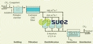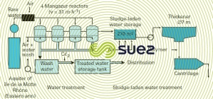 Figure 34. - Schematic diagram of the Sorgues DWTP (Vaucluse, France) – Biological manganese removal. Capacity: 28,800m3 · j–1